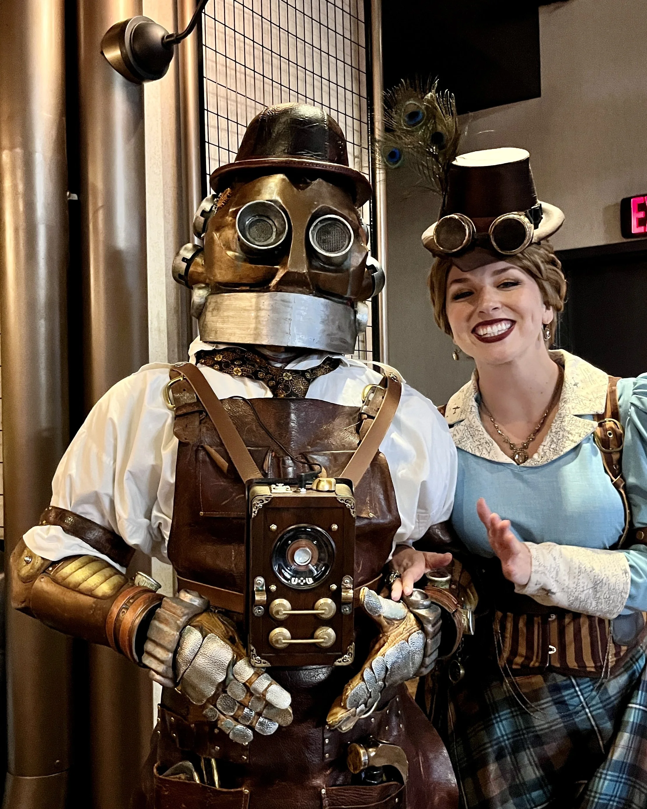 The moment you spot the towering smokestacks and golden gears of the Emporium, you know you’re in for something magical. Inspired by a 19th-century steampunk chocolate factory, the exterior is just the beginning of the fantasy. Inside, you’ll meet quirky characters like Professor Doctor Penelope Tibeaux-Tinker Toothsome and her robot companion Jacques, who sometimes make surprise visits around the dining room.