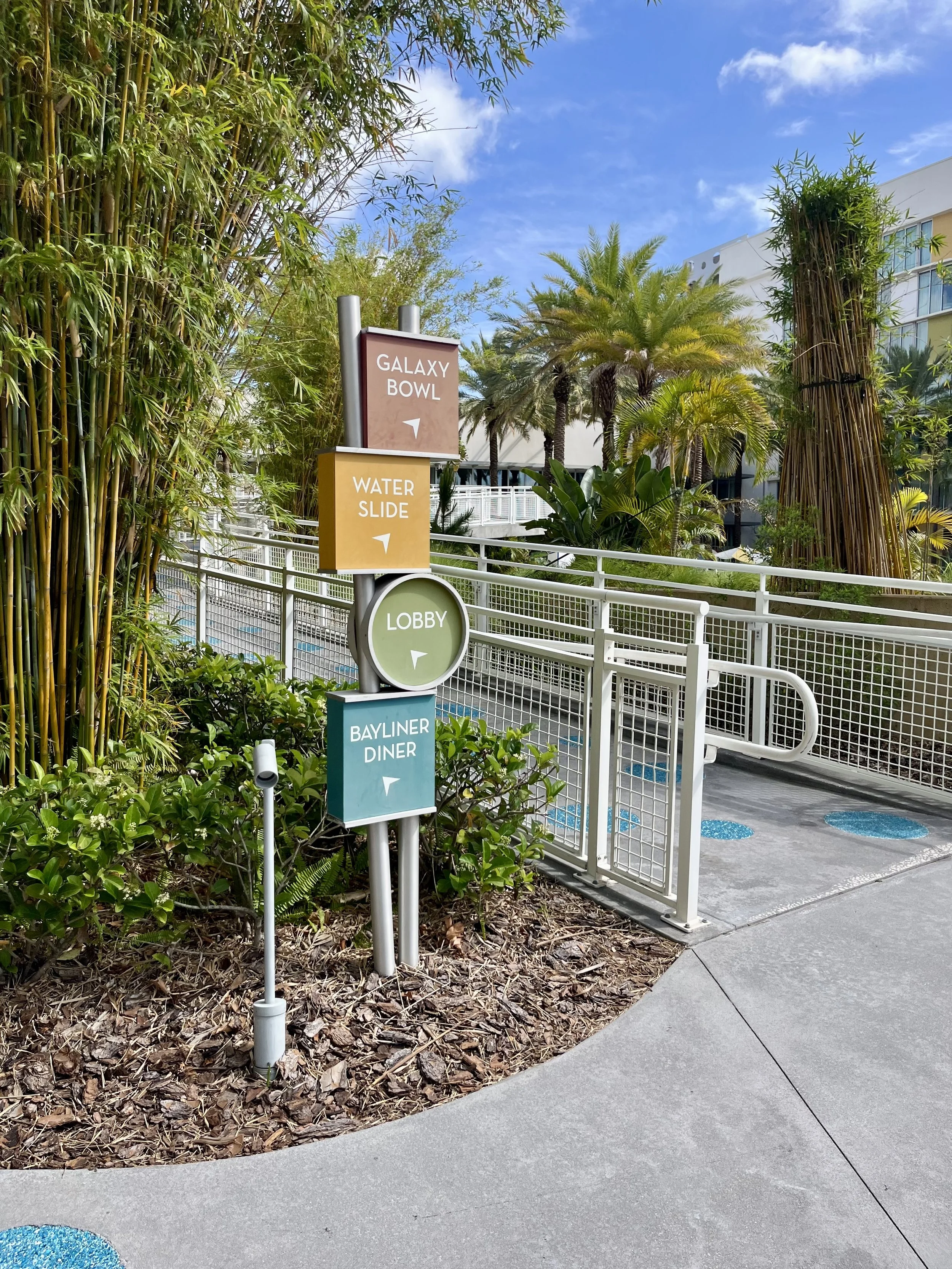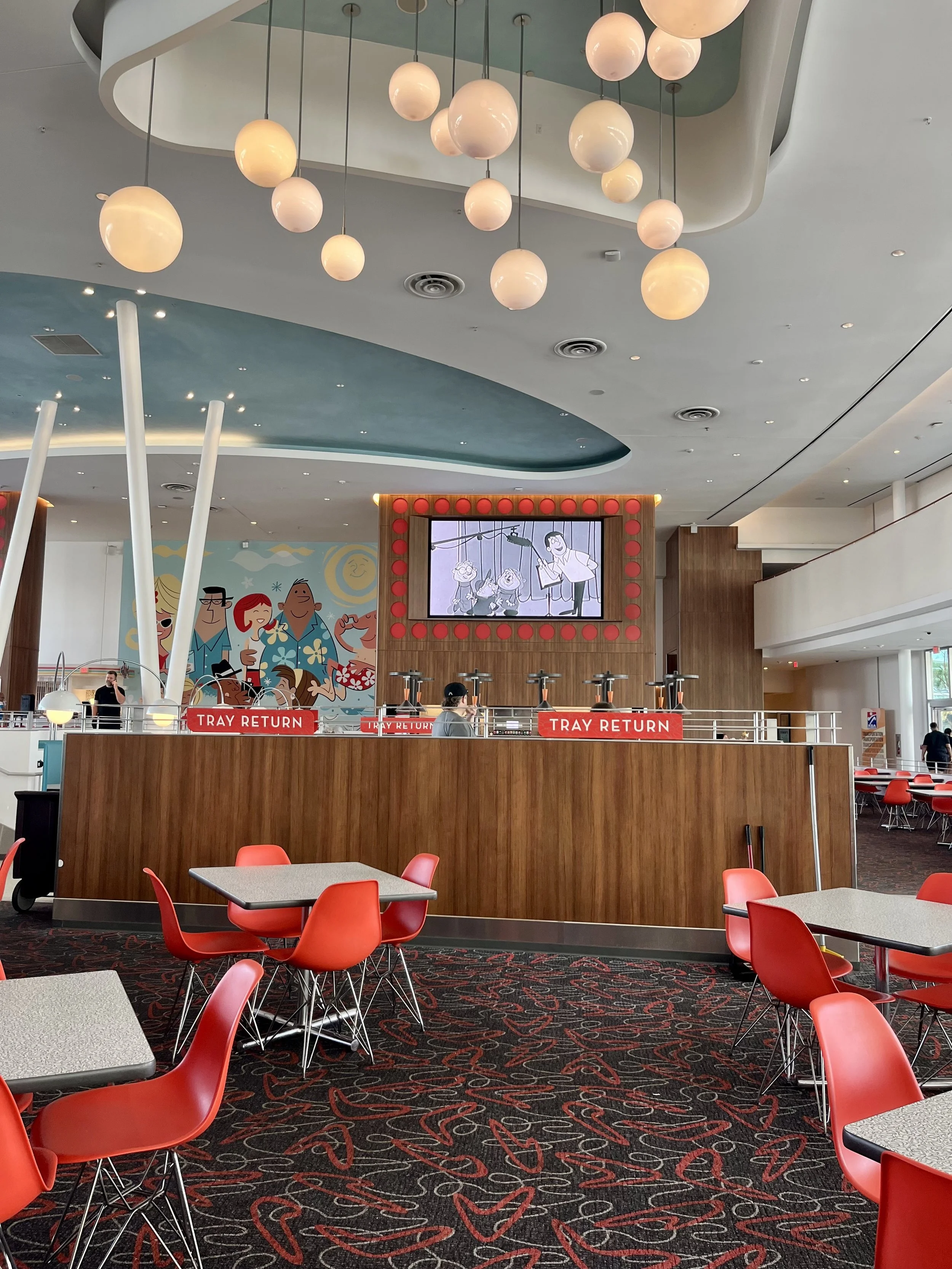 Cabana Bay’s theming is more than cosmetic—it's fully immersive. You’ll be surrounded by mid-century architectural nods to Florida's golden age of motels and beach hotels. Even dining spaces contribute: the Bayliner Diner food court screens nostalgic commercials, evoking the early era of TV meals. Poolside spots like Atomic Tonic and Hideaway Bar & Grill lean into retro-futuristic “space coast” design—fun nods to the 1960s space race aesthetic.