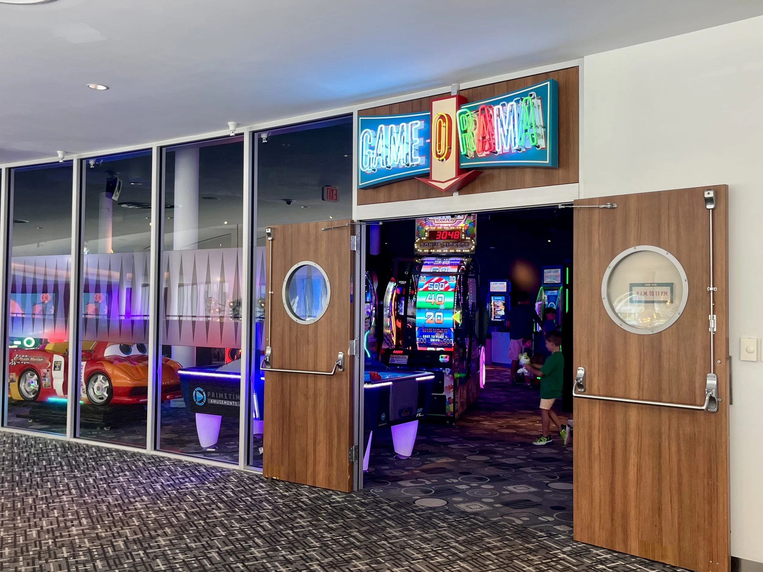 Kid-approved amenities like dual pools, lazy river, a bowling alley, and arcade.